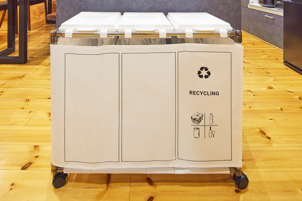 キッチン棚内に3つゴミ箱を設置しています。分別のご協力をお願いいたします。
