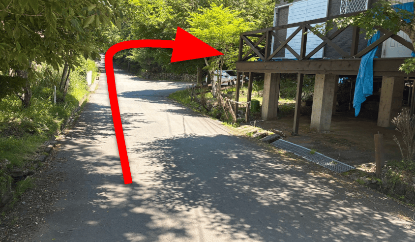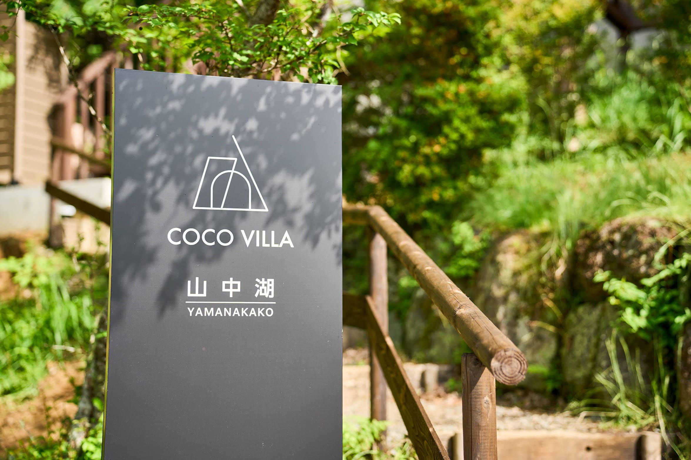 道なりの左手が本物件です。 階段脇に「COCO VILLA 山中湖」の看板がございます。