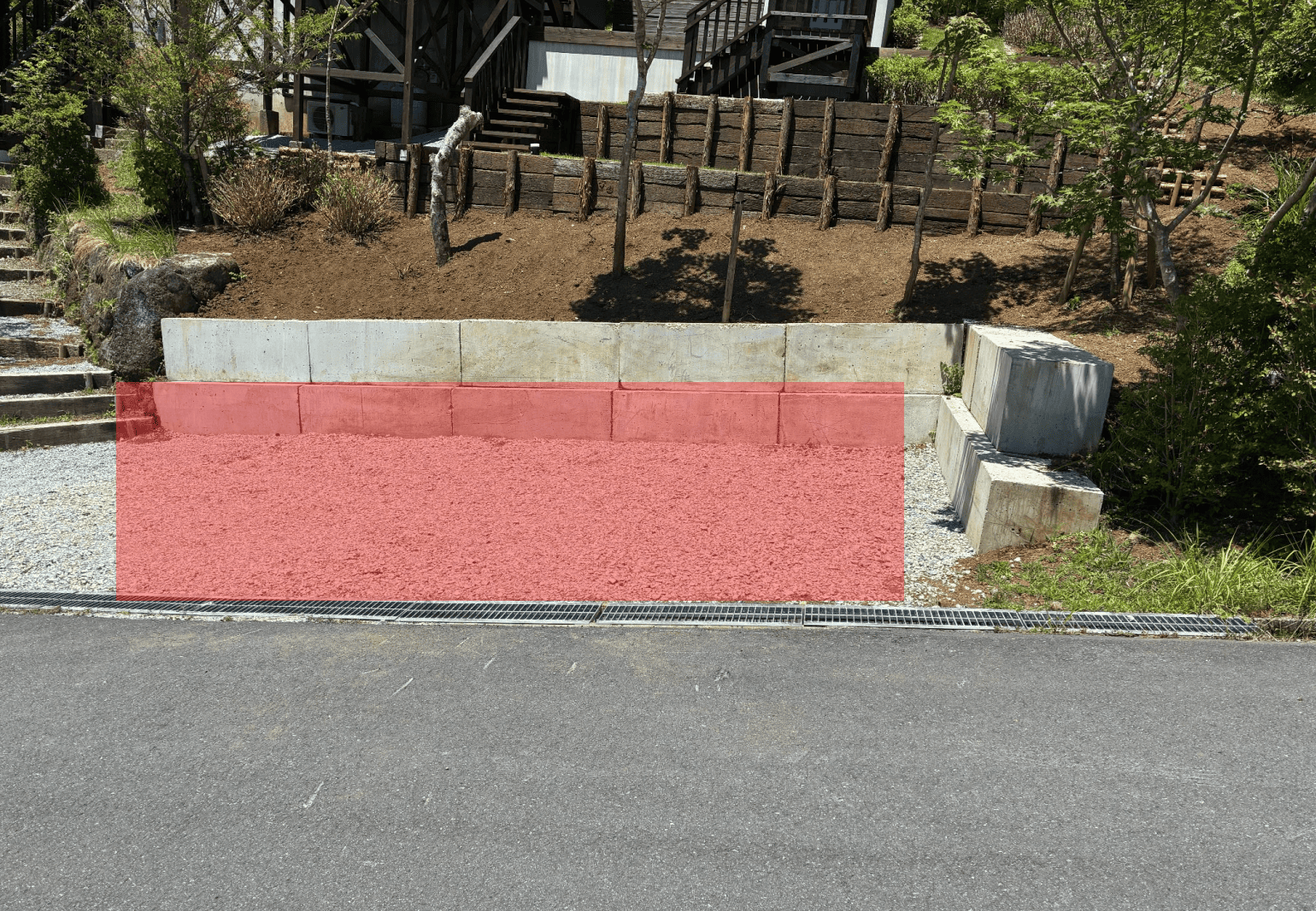 COCO VILLA の駐車場は拠点手前にございます。 ※写真の手前砂利の箇所がスペースになります。
