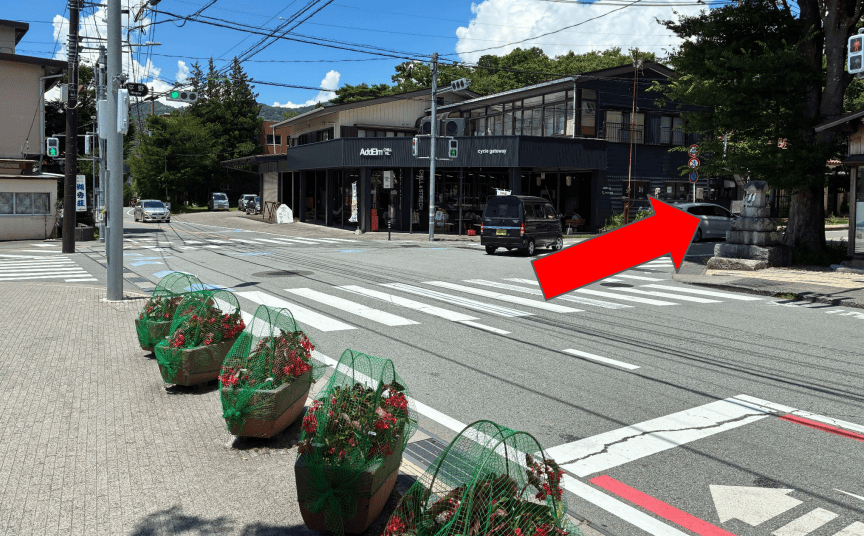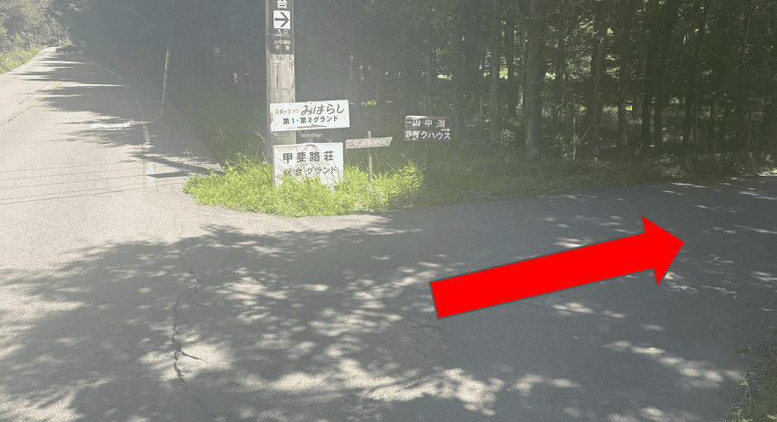 「レイク山中 平野台」の電柱が見えましたら、右折し道なりに進む
