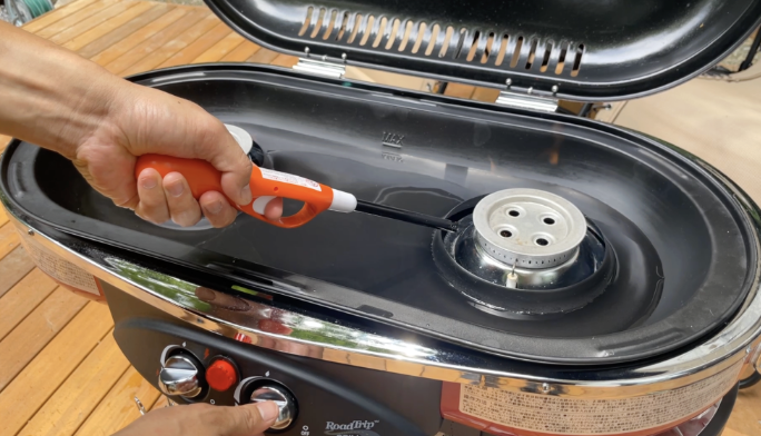火がつかない場合は、ガス栓のつまみを回しながら、チャッカマンで火をつけてください。