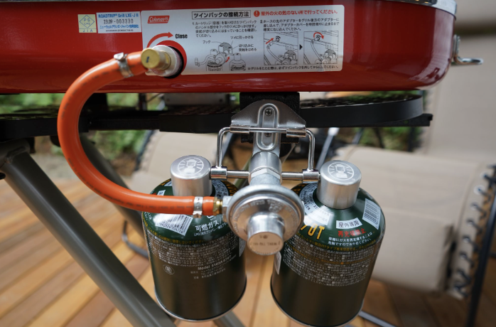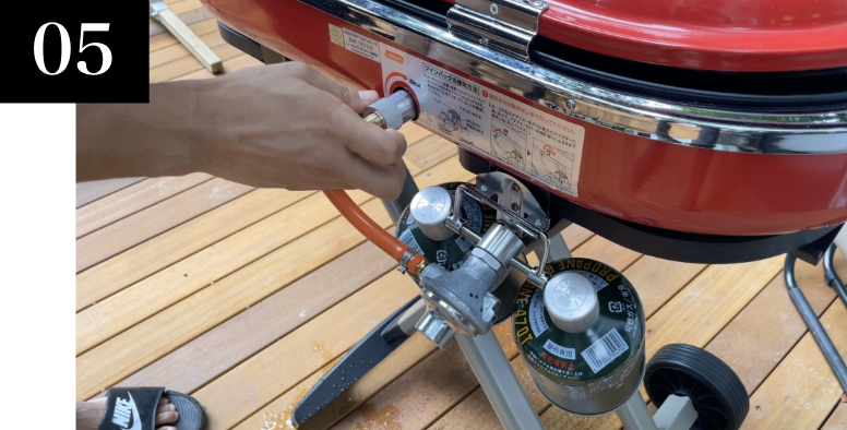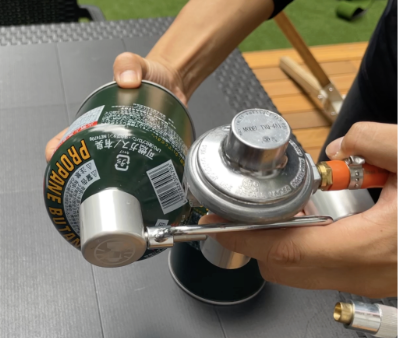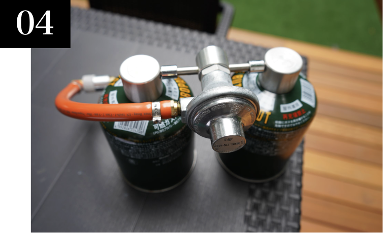 ガスボンベをガス栓に取り付けてください。