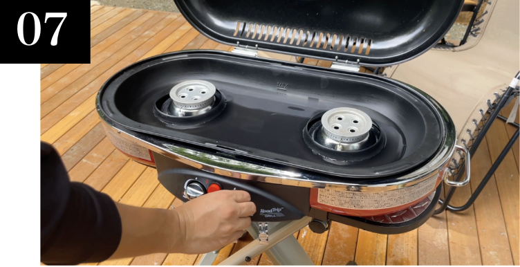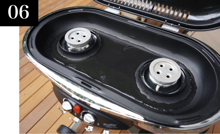 ※ BBQグリルを使用中は、水がなくならないように補充しながらご使用ください
