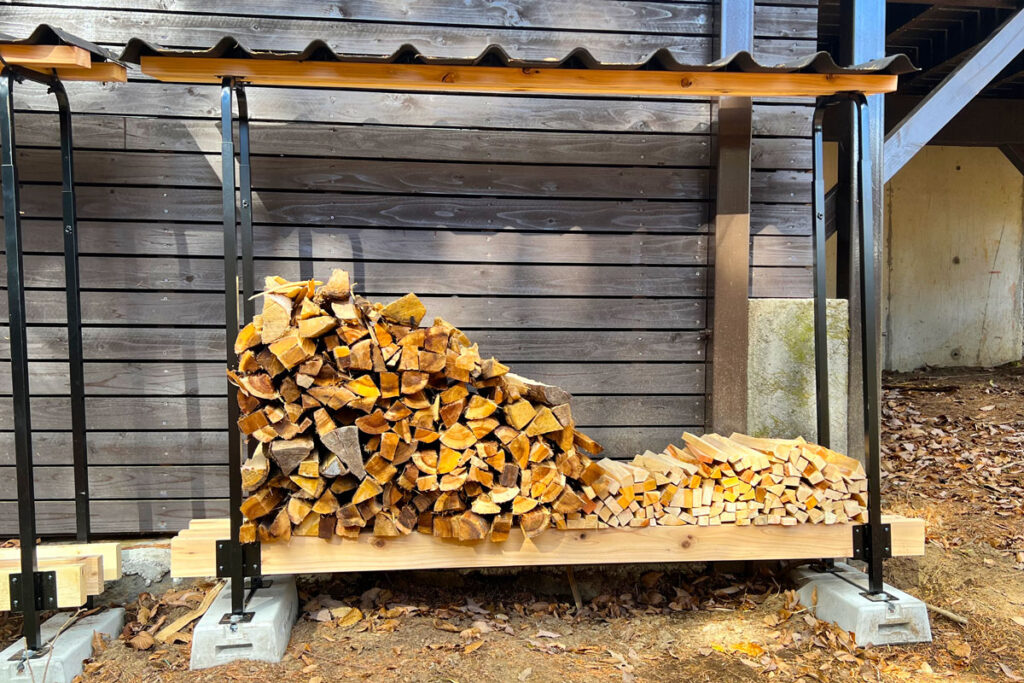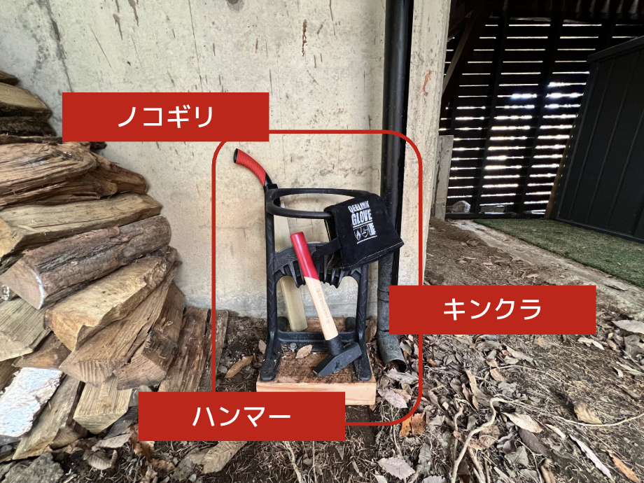 薪が足りない場合は、キンドリングクラッカー(薪割り機・通称キンクラ)の横に積んであるものからご利用ください。