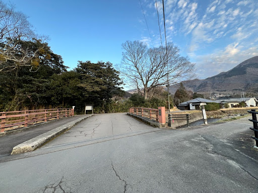 由布院の街を流れる「大分川」。 その上に架かる「源流橋」という橋からVILLAまで、徒歩30秒程です。