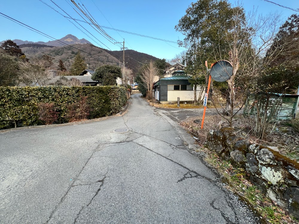 奥にある「ドルドーニュ美術館の看板」と手前にある「カーブミラー」の間の道です。 右折後、右手側にCOCO VILLA湯布院があります。