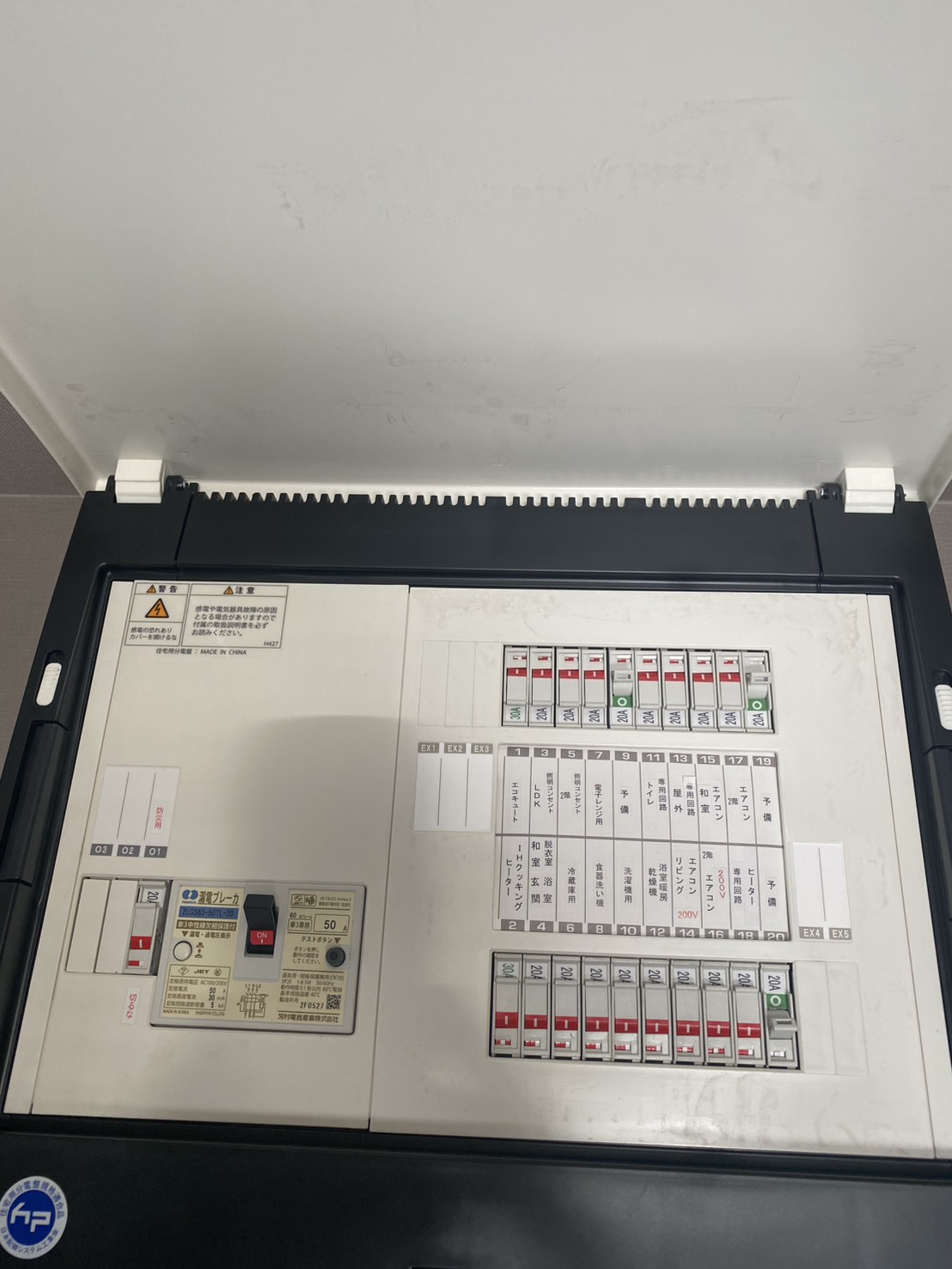 もしブレーカーが落ちた場合は洗面所上のブレーカーのスイッチをオンにして下さい。下記画像の状態にしてください。