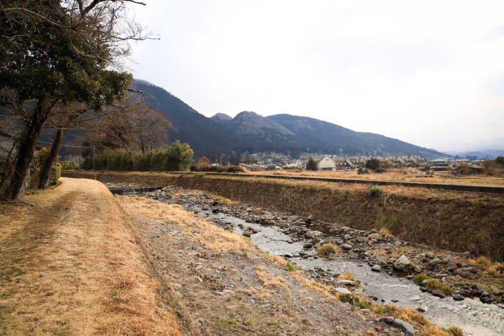 裏庭の先には土手が広がり、観光客や周辺住民の方々が利用されるエリアとなっています。